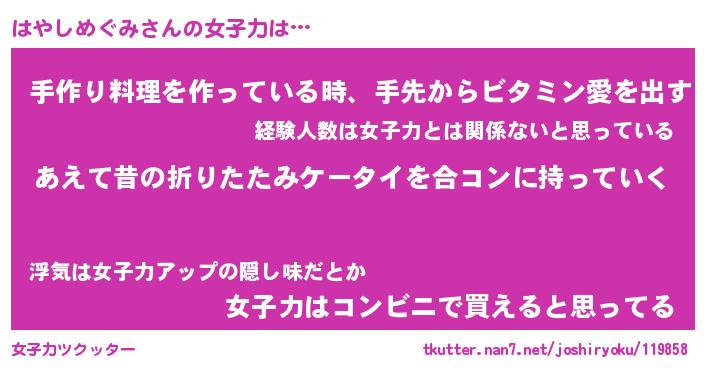 はやしめぐみさんの女子力をツクッター!