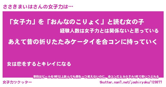 | 恥ずかしいあだ名 | 『プリティーささきまいは』『ささっちょ』 |