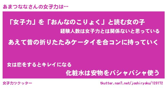 | 恥ずかしいあだ名 | 『プリティーあまつなな』『あまっちょ』 |