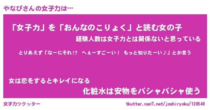 | ファンタジー風あだ名 | 『ヤナフェル』『エターナルヤナピー』 |