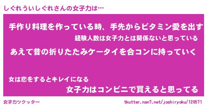 | ヘコむあだ名 | 『しぐにゅー』『つくし』『しぐを』 |
