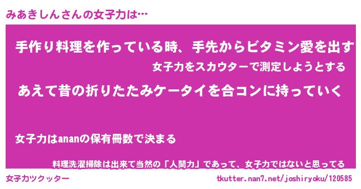 | 胡散臭い通販商品みたいなあだ名 | 『必ず成功するブレスレット…その名も「みあきしん」』 |