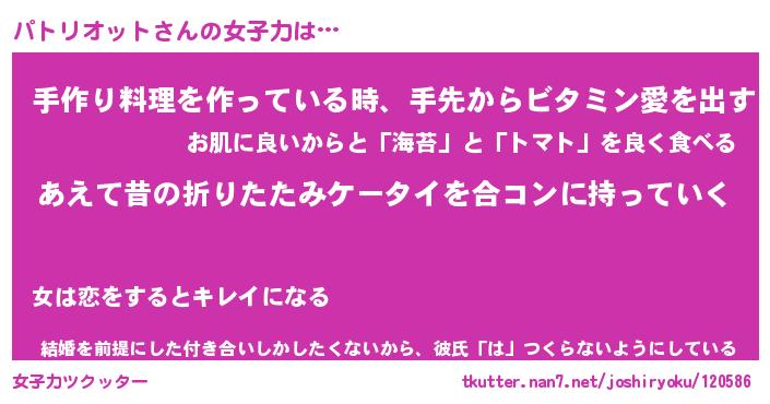 | 恥ずかしいあだ名 | 『プリティーパトリオット』『パトっちょ』 |