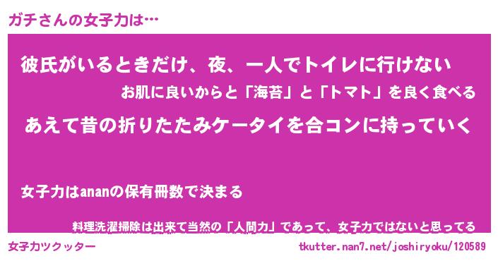 | ヘコむあだ名 | 『ガチふぇ~』『牛乳』『ガチっちょ』 |