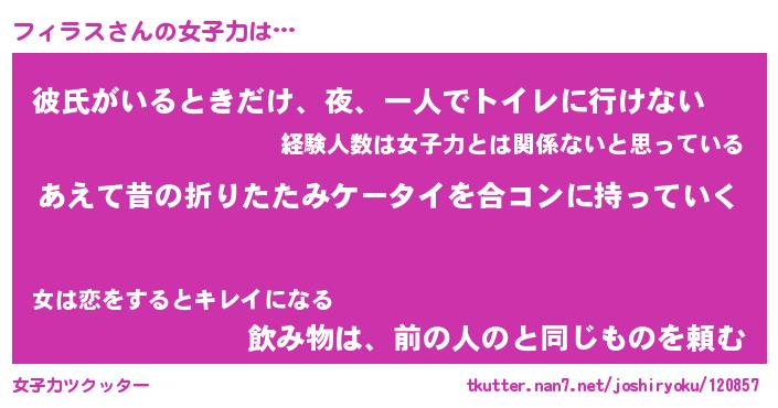 | ヘコむあだ名 | 『フィにゅー』『豆乳』『フィっ子』 |