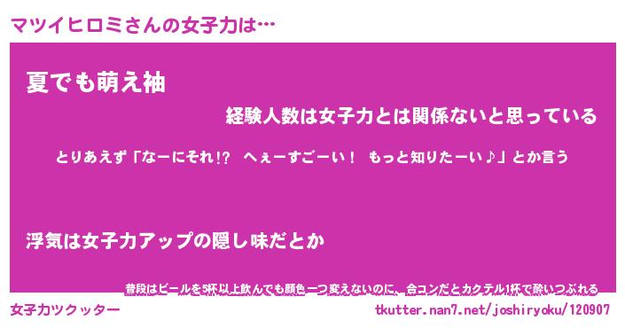 | 胡散臭い通販商品みたいなあだ名 | 『モテモテ間違いなし霊験あらたかなお札…その名も「マツイヒロミ」』 |