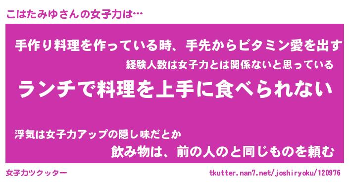 | ファンタジー風あだ名 | 『コハフェル』『エターナルコハタミユー』 |