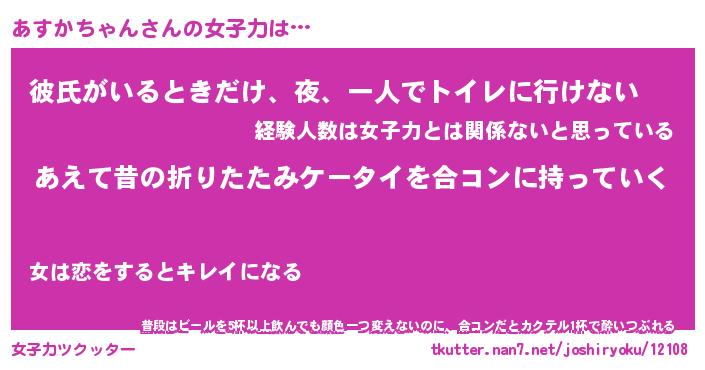 | 恥ずかしいあだ名 | 『プリティーあすかちゃん』『あすっちょ』 |