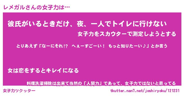 | ファンタジー風あだ名 | 『レメフェル』『エターナルレメガルー』 |