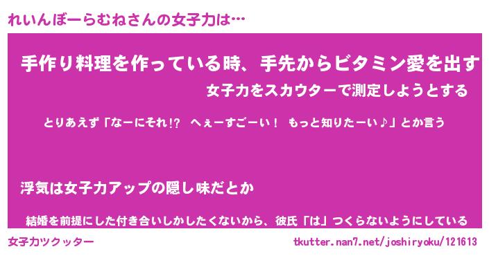| ヘコむあだ名 | 『れいふぇ~』『つくし』 |