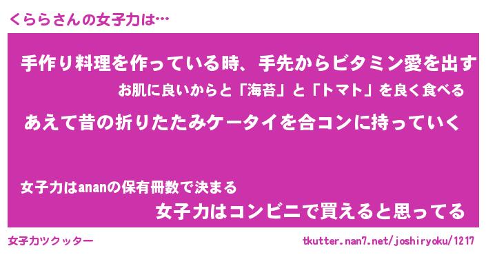 | 意味不明あだ名 | 『ペロリンくらら』『くららフォーエバー』 |