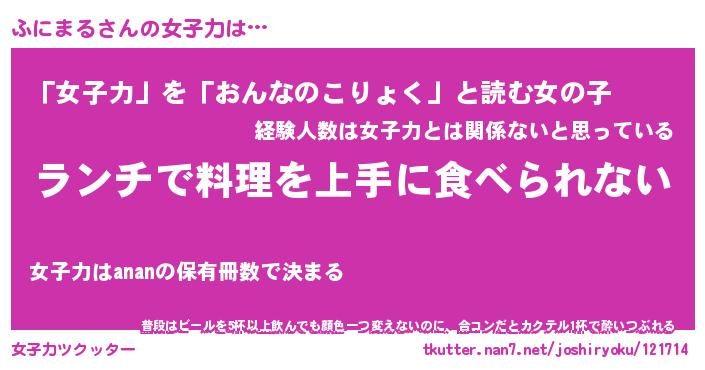 | ヘコむあだ名 | 『ふににー』『つくし』『ふにぷりん』 |