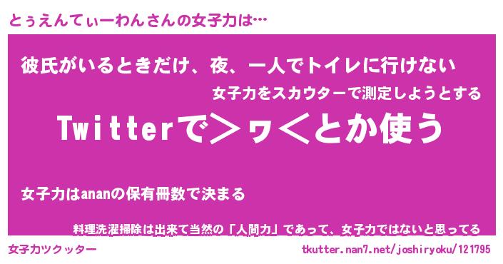 | 胡散臭い通販商品みたいなあだ名 | 『必ず成功するブレスレット…その名も「とぅえんてぃーわん」』 |