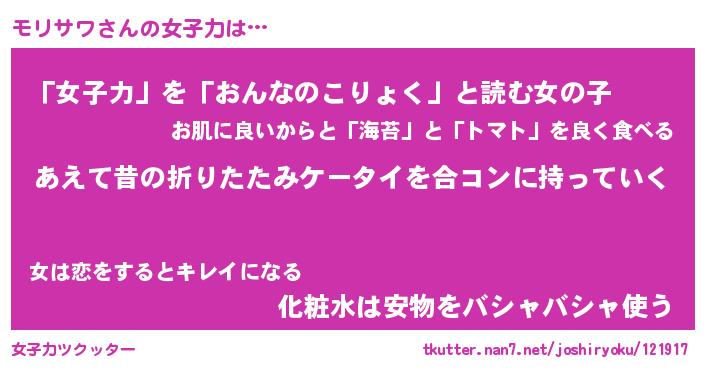 | ヘコむあだ名 | 『モリっふぃ~』『レバニラ』 |
