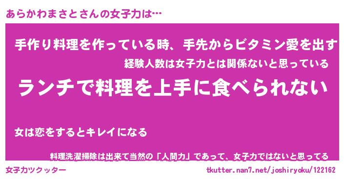 | 恥ずかしいあだ名 | 『プリティーあらかわまさと』『あらちん』 |