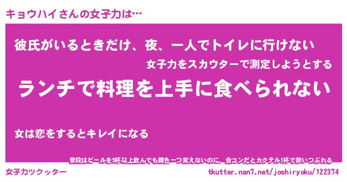 | ヘコむあだ名 | 『キョふぇ~』『豆乳』『キョっちょ』 |