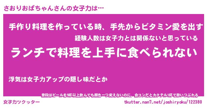 | ヒーロー風カッコイイあだ名 | 『スーパーサオリオバチャン』 |