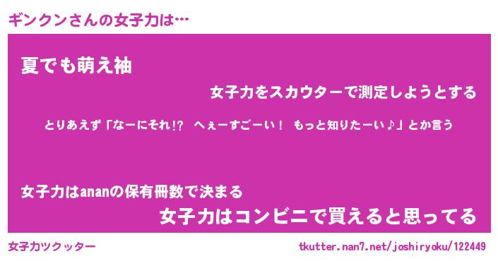 | ヘコむあだ名 | 『ギンもー』『なまこ酢』 |