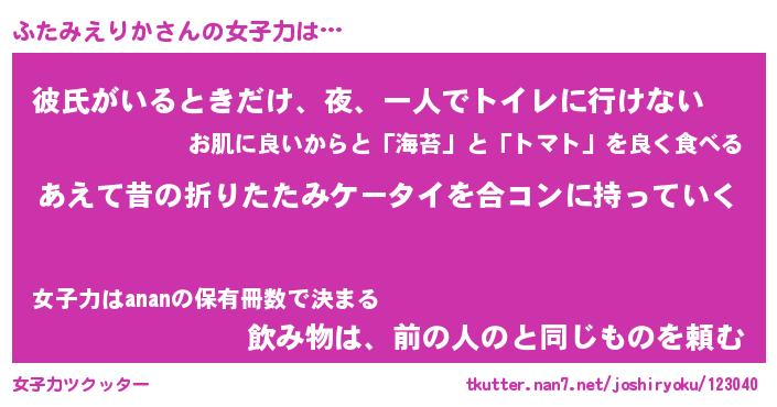| ヒーロー風カッコイイあだ名 | 『スーパーフタミエリカ』『銀牙騎士フタ』 |