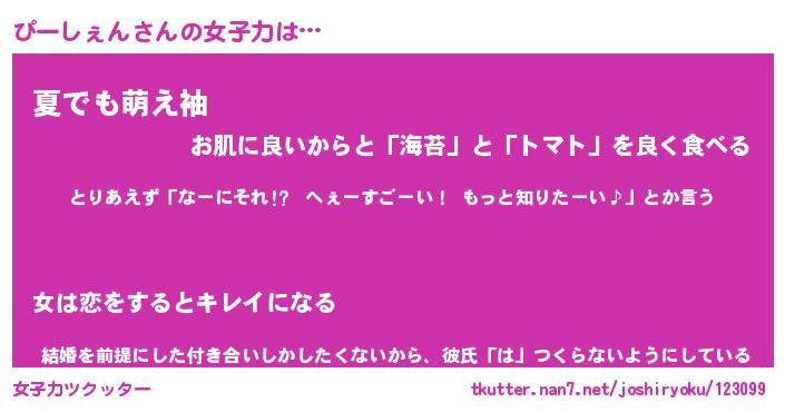 ぴーしぇんさんの女子力をツクッター!