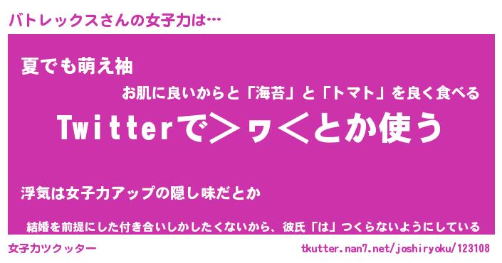 | ヘコむあだ名 | 『バトにゅー』『なまこ酢』 |