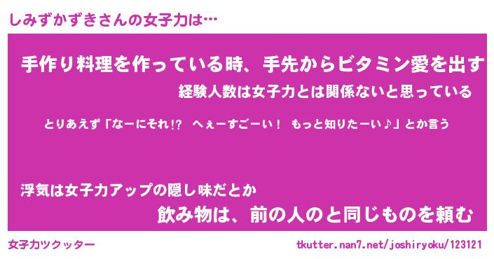 | 恥ずかしいあだ名 | 『プリティーしみずかずき』『しみっちょ』 |
