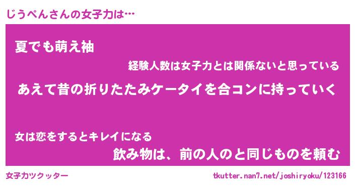 | ヘコむあだ名 | 『じうふぇ~』『なまこ酢』 |