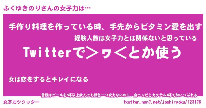 | 女子向けラノベタイトル風あだ名 | 『(仮)ふくゆきのりのやんごとなき事情』 |
