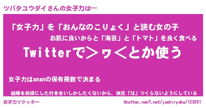 | ファンタジー風あだ名 | 『ツバフェル』『ファントムツバス』 |