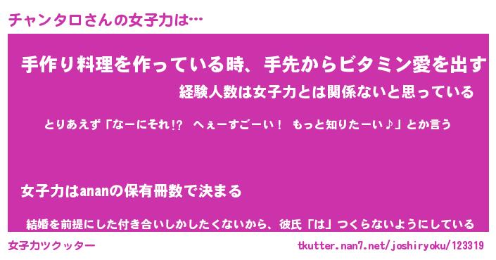 | ヘコむあだ名 | 『チャにー』『豆乳』『チャっぺ』 |