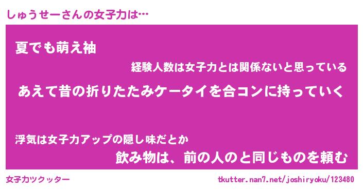 | ヘコむあだ名 | 『しゅにゅー』『なまこ酢』 |
