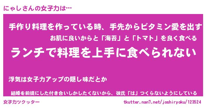 | 恥ずかしいあだ名 | 『プリティーにゃし』『にゃっちょ』 |