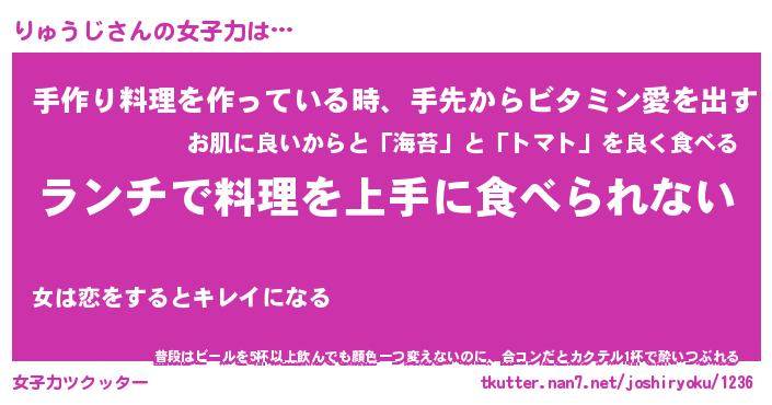 | 恥ずかしいあだ名 | 『プリティーりゅうじ』『りゅっちょ』 |