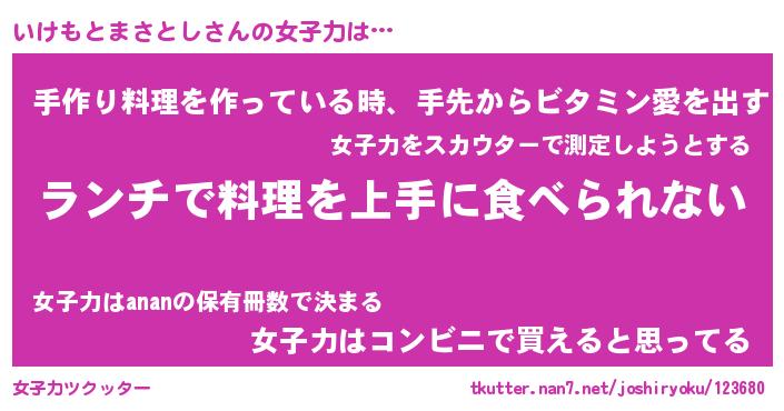 | ヒーロー風カッコイイあだ名 | 『スーパーイケモトマサトシ』 |
