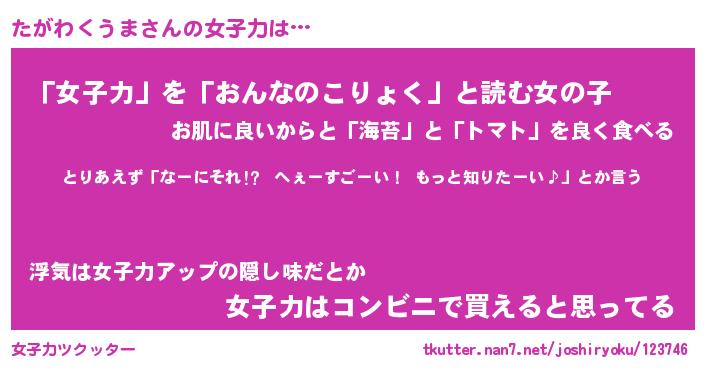 | ポケモン風あだ名 | 『タガチュウ』『タガワダネ』 |