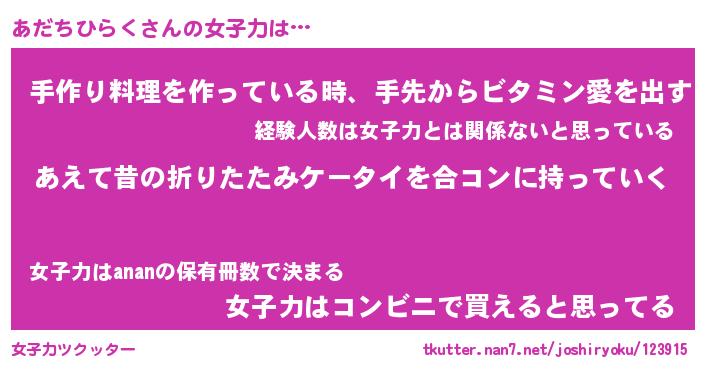 | ヒーロー風カッコイイあだ名 | 『スーパーアダチヒラク』『天弓騎士アダ』 |