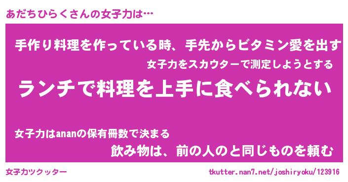 | 肩書あだ名 | 『あだちひらく社長』『あだちひらく団長』 |