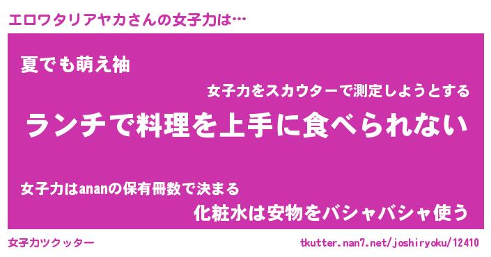 | 胡散臭い通販商品みたいなあだ名 | 『億万長者になれるブレスレット…その名も「エロワタリアヤカ」』 |