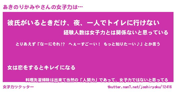 | ヘコむあだ名 | 『あきふぇ~』『豆乳』『あきを』 |