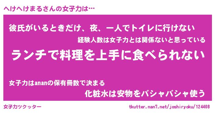 | ヘコむあだ名 | 『へけふぇ~』『なまこ酢』 |