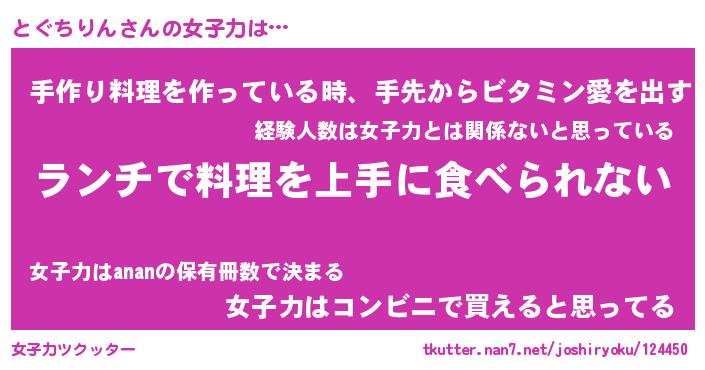 | ヘコむあだ名 | 『とぐもー』『つくし』『とぐお』 |