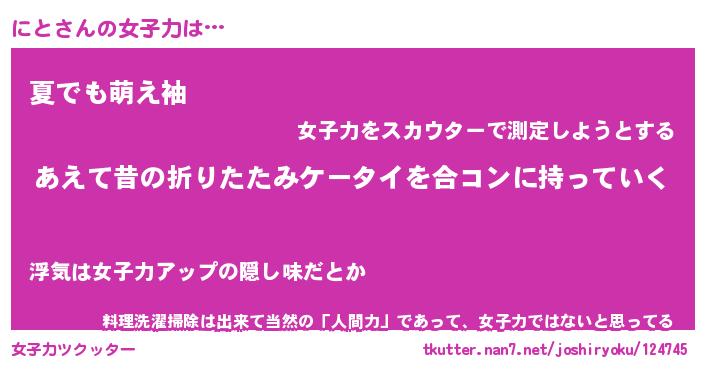 | ヘコむあだ名 | 『にともー』『なまこ酢』『にとを』 |