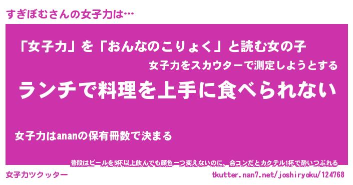 | ヘコむあだ名 | 『すぎもー』『つくし』『すぎぷりん』 |