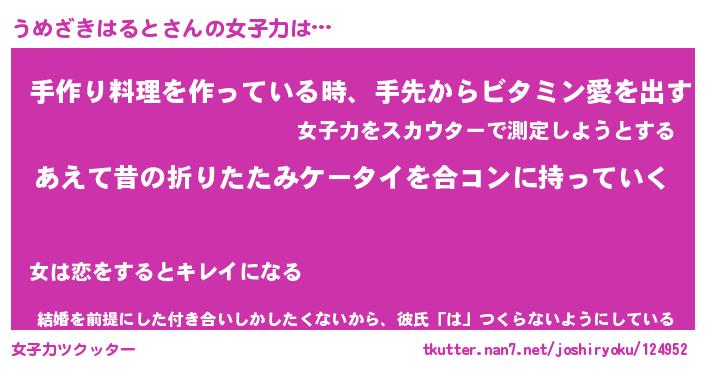 | ポケモン風あだ名 | 『ウメチュウ』『ウメザダネ』 |