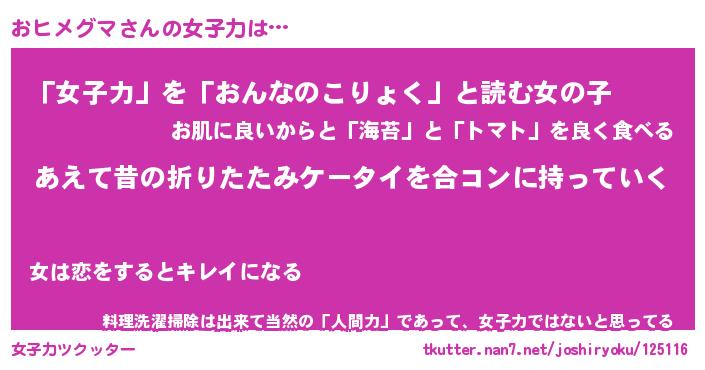 | ファンタジー風あだ名 | 『オヒフェル』『エターナルオヒメグマー』 |