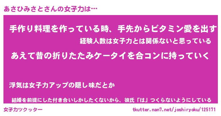 | 恥ずかしいあだ名 | 『プリティーあさひみさと』『あさっちょ』 |