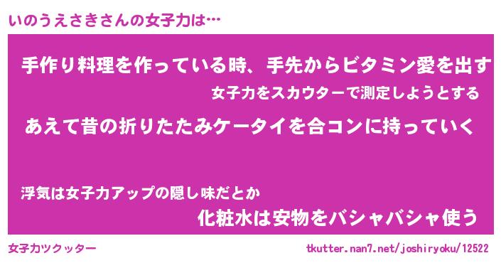 | 女子向けラノベタイトル風あだ名 | 『(仮)いのうえさきのやんごとなき事情』 |