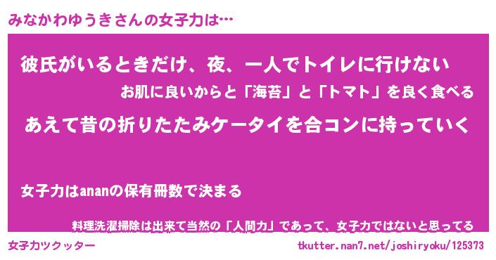 | 女子向けラノベタイトル風あだ名 | 『(仮)みなかわゆうきのやんごとなき事情』 |