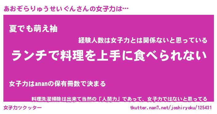 | 男性向けラノベタイトル風あだ名 | 『アオゾラリュウセイグンアートオンライン』 |