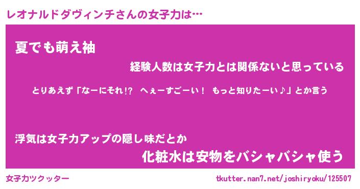 | 女子向けラノベタイトル風あだ名 | 『レオナルドダヴィンチ姫と円卓の騎士』 |